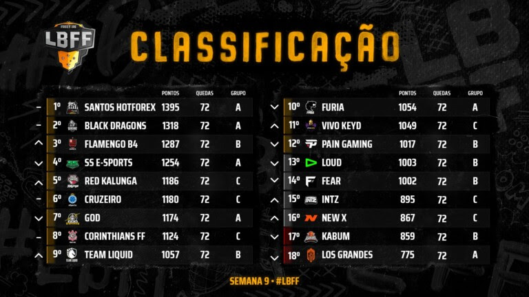 Terminou no último domingo (18) a fase de pontos da 3ª etapa Liga Brasileira de Free Fire (LBFF). Santos HotForex, Black Dragons, Flamengo B4, RED Kalunga, Cruzeiro, GOD, Corinthians Free Fire, Team Liquid, FURIA, Vivo Keyd e paiN Gaming foram as equipes classificadas para as finais que serão disputadas nos dias 31 de outubro e 01 de novembro.