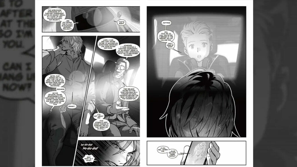 Johann Petrovich, colega de Ken, comenta que o torneio sofisticado de Ken, que usará drones de IA omnidirecionais para lutas de ord dentro de uma arena situada entre ruínas antigas, pode atrair investimentos para Nayshall e com isso ajudar a conduzir a nação em rápido desenvolvimento em direção à independência.