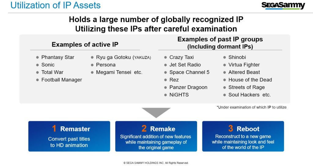 Agora, antes que alguém se empolgue com Monkey Balls ou Virtua Fighters, a Sega publicou que o título apresenta um novo IP e será vendido no mercado internacional. O relatório diz que a Sega tem muita fé no crescimento a longo prazo do Super Game, apesar de ser uma franquia desconhecida. Falando de franquias clássicas da Sega, o relatório inclui uma seção referenciando especificamente o potencial “Remaster, Remake e Reboot” de alguns nomes famosos.