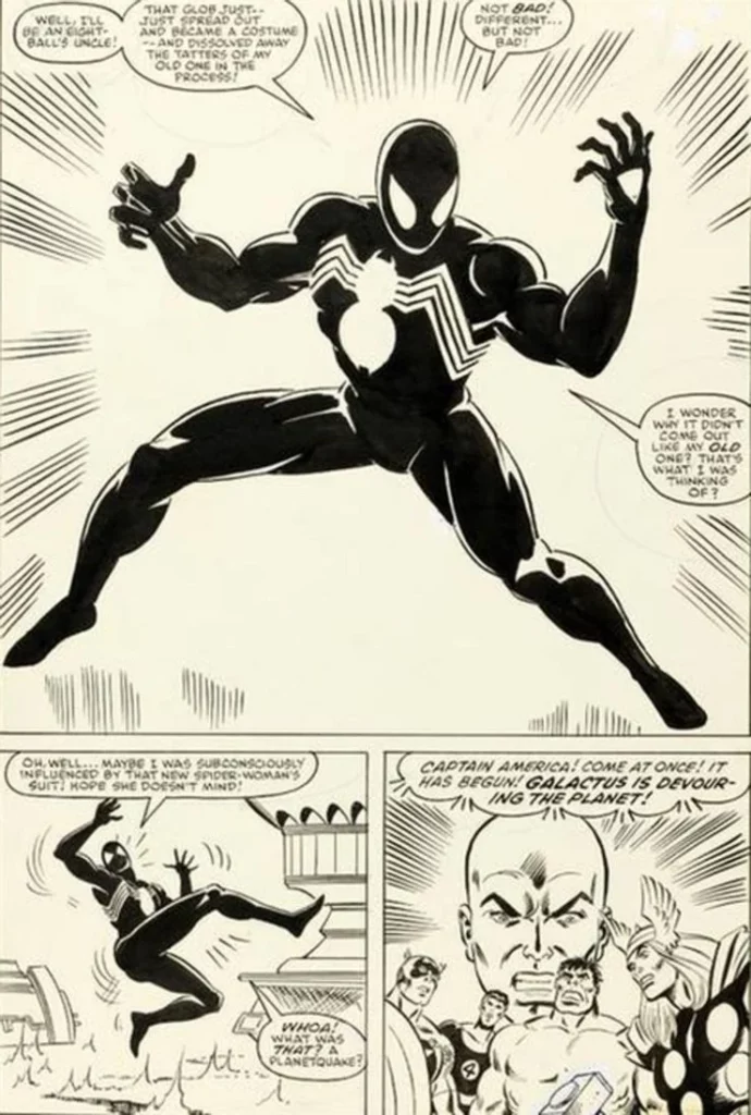 A venda ainda quebrou um recorde anteriormente detido por outra página de quadrinhos da Marvel em X-men, com a estreia de Wolverine, mantendo o recorde de página única mais cara já vendida. O traje preto ‘simbionte’ do Spider se tornou um marco da franquia, e uma das partes mais reconhecíveis da história dele, mas gerou também um dos vilões mais icônicos. A criação do traje levou à introdução do Venom do Homem-Aranha, com a mesma espécie de ‘simbionte’ alienígena gerando o vilão memorável.