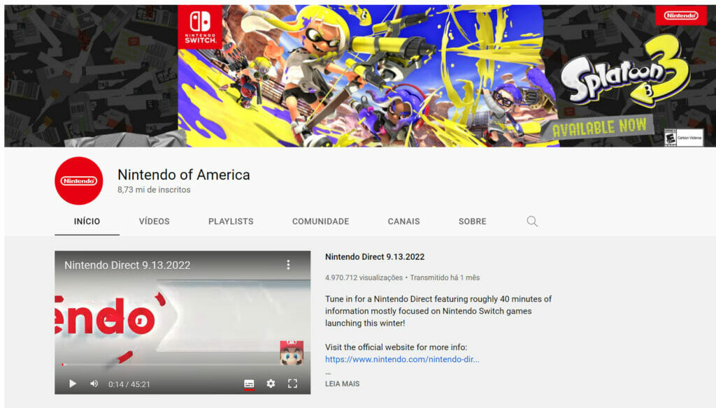 Curiosamente, o URL oficial da conta ainda termina em simplesmente ‘Nintendo’, embora haja uma explicação provável para a mudança. O YouTube anunciou recentemente que estava mudando a maneira como os nomes dos canais no site funcionam, permitindo que os usuários configurem um identificador específico para suas contas.