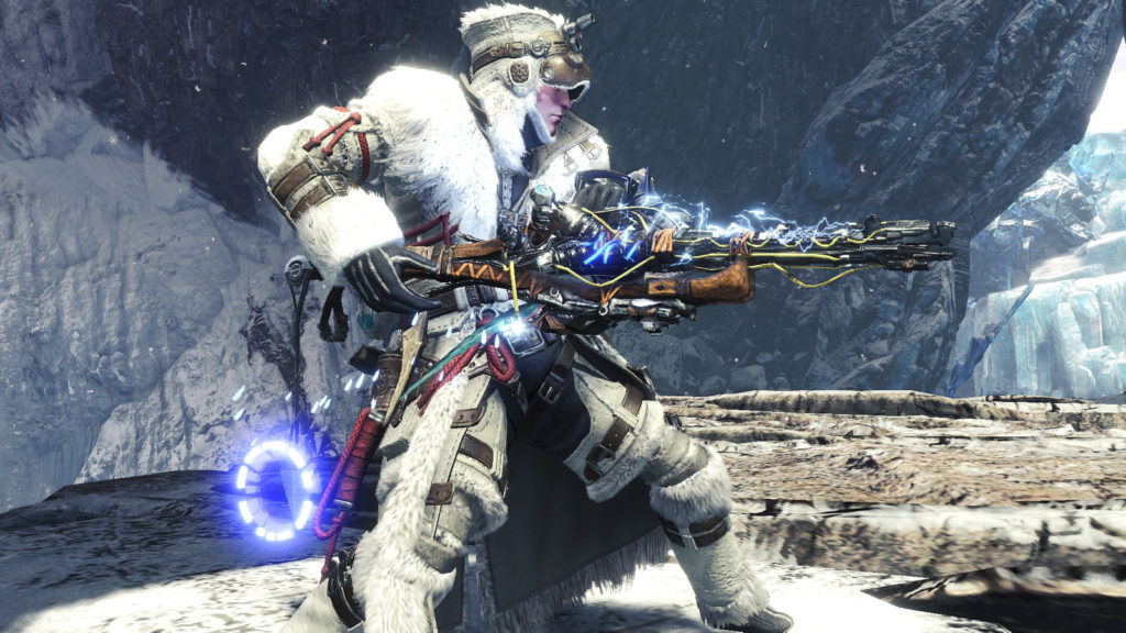 Esta arma de longo alcance é baseada no Improved Stormslinger de Horizon Zero Dawn: The Frozen Wilds, e se encaixou muito bem na série Monster Hunter. Todo o design e a estética da tribo Banuk está aqui: estrutura de madeira, tons azul claros e um certo apelo artesanal/improvisado.