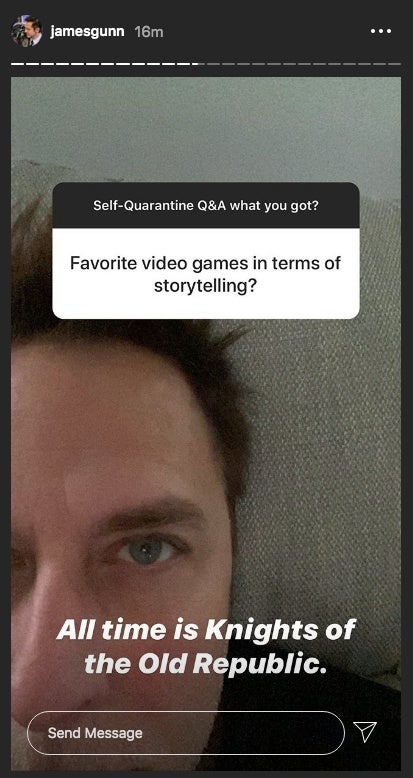 Durante uma recente sessão de perguntas e respostas do Instagram, foi perguntado a Gunn qual videogame é o seu favorito “em termos de narrativa”, ao qual ele respondeu ser Guerra nas Estrelas: Cavaleiros da República Velha.