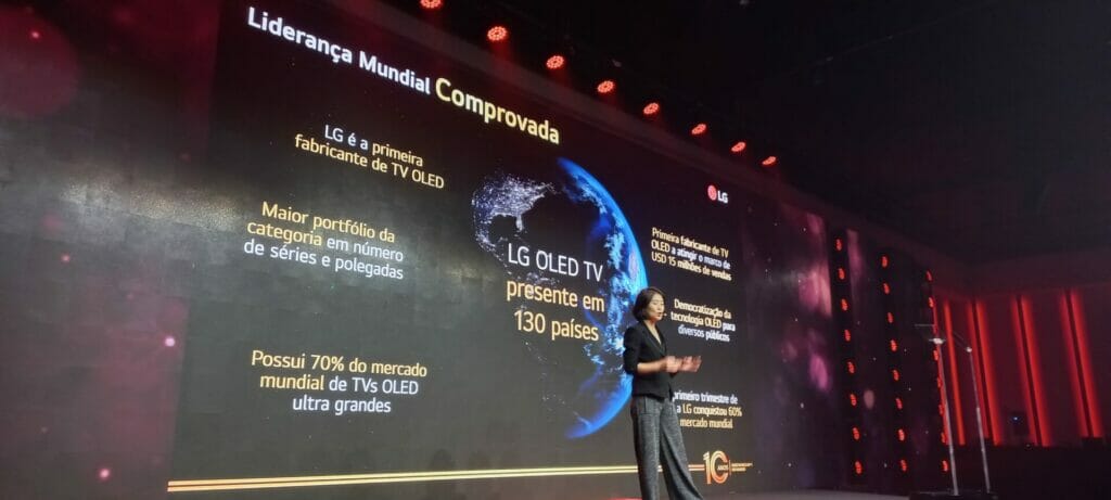 Na última quinta (13), a LG Brasil reuniu imprensa e convidados em São Paulo para celebrar 10 anos de dedicação ao mercado de TVs da categoria OLED. O encontro, que contou com a apresentadora Sabrina Parlatore como mestre de cerimônia, também serviu para a empresa comentar a jornada tecnológica do segmento OLED até os dias atuais, além de apresentar suas novidades e propostas para o futuro do segmento.
