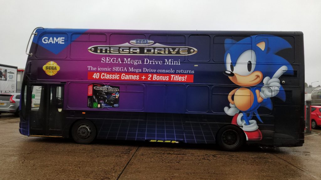 O ônibus tematizado com o épico console japonês percorrerá parte do Reino Unido afim de divulgar o Mega Drive Mini, a edição comemorativa do épico Mega Drive. Dentro do ônibus, será possível experimentar qualquer um dos 40 jogos clássicos que fizeram história no console, além dos bônus TETRIS e Darius.