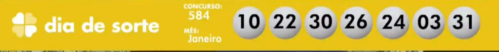Neste sábado (26), a Caixa sorteou com transmissão ao vivo o concurso 584 pela loteria Dia de Sorte. O evento aconteceu hoje à partir das 20h, direto do Espaço da Sorte, na Avenida Paulista. Confira o resultado: