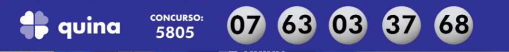 Nesta quinta (17), a Caixa sorteou o concurso 5805 da loteria da QUINA, avaliado até o momento do sorteio em R$ 14.080.813,97. Confira abaixo: