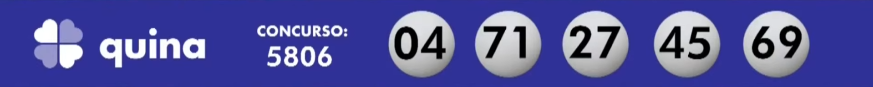 Nesta sexta (18), a Caixa sorteou o concurso 5806 pela loteria da QUINA, avaliada até o momento em cerca de R$ 700.000,00. A transmissão do sorteio foi transmitida ao vivo e o resultado pode ser conferido logo abaixo: