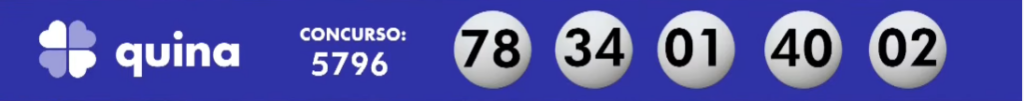 Nesta segunda (7), a Caixa realizou o número 5796 da loteria da QUINA. Até o momento do sorteio, a premiação estava estimada em torno de R$ 700.000,00.