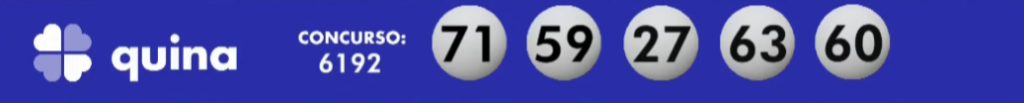 Nesta terça (18), a Caixa sorteou o concurso 6192 da Quina. E mais uma vez, este e outros sorteios da noite aconteceram com transmissão ao vivo direto do Espaço da Sorte, em São Paulo. Confira abaixo: