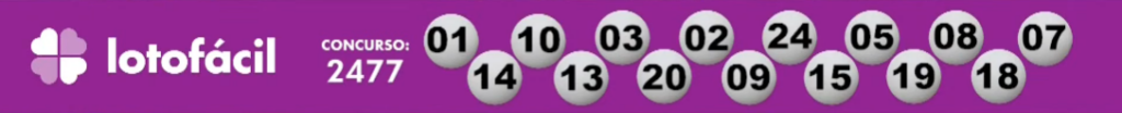 Nesta terça (22), a Caixa sorteou o concurso 2477 válido pela loteria da Lotofácil. Mais uma vez, o sorteio aconteceu à partir das 20h com transmissão ao vivo do Espaço da Sorte, sede oficial do evento em São Paulo. Confira abaixo: