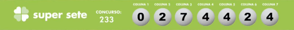 Nesta quarta (20), a Caixa sorteou o concurso 233 da loteria do Super Sete. E mais uma vez, a rodada de sorteios da noite aconteceu à partir das 20h, direto do Espaço da Sorte, na Avenida Paulista, em São Paulo. Confira abaixo: