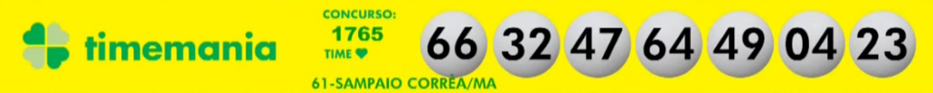 Neste sábado (26), a Caixa sorteou o concurso 1765 válido pela loteria da Timemania, que até o momento está avaliada em cerca de R$ 6.900.000,00. E mais uma vez, a transmissão de prêmios da rodada aconteceu à partir das 20h, direto do Espaço da Sorte, na Avenida Paulista, em São Paulo. Confira os números da rodada: