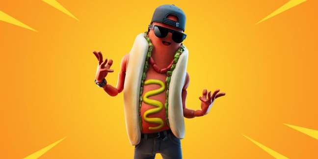 Procurando uma skin descontraída? Brat está aí para isso. O personagem é um cachorro-quente vestido com roupas inspiradas na moda de rua do hip-hop, incluindo uma tatuagem de mostarda e um colar de salsichas.