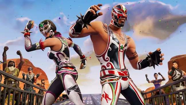 Luchador e luchadora de Fortnite estão na lista de skins mais estilosas disponíveis para praticantes de luta-livre. Os trajes colantes e as máscaras icônicas homenageiam o tradicional esporte mexicano.