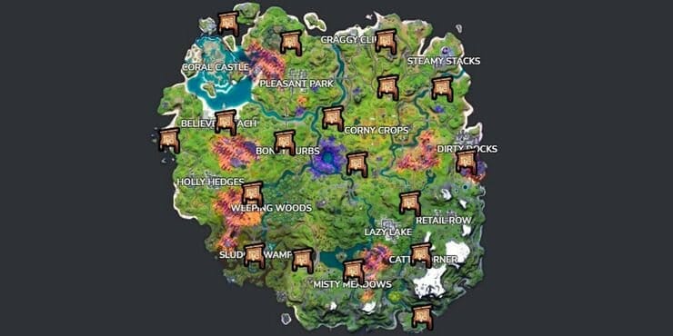 Introduzidos pela primeira vez no Capítulo 2, Temporada 5, os Bounty Boards de Fortnite são exatamente o que parecem. Os jogadores podem se aproximar de um tabuleiro e interagir com ele para receber uma recompensa de jogador aleatório. Um alvo se forma no mapa do jogador na forma de um círculo que, conforme o tempo começa a diminuir, irá encolher lentamente para revelar uma localização mais precisa.