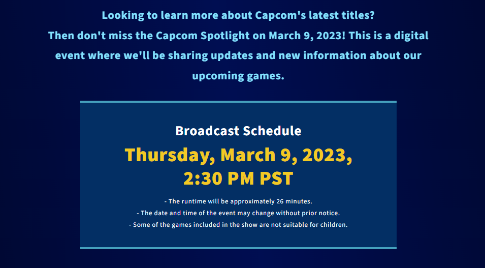 Recentemente, a Capcom deu uma olhada mais de perto no que esperar de Street Fighter 6 no evento State of Play do PlayStation. Agora parece que o desenvolvedor estará provocando alguns de seus próximos jogos para 2023. Assim, o próximo evento da empresa será o Capcom Spotlight, que é um evento global de transmissão ao vivo digital de 26 minutos para sua linha de jogos de 2023.