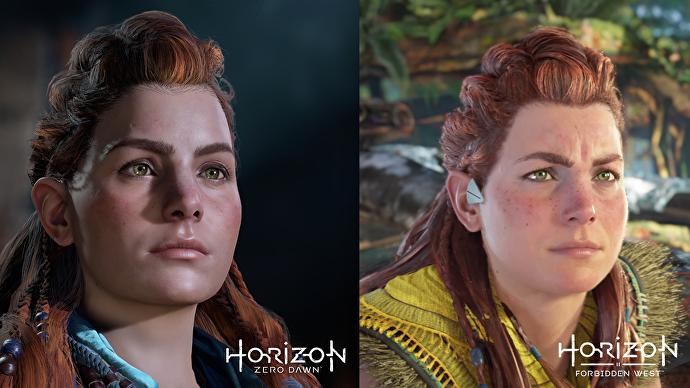 De acordo com a mídia internacional, houveram pequenas, mas notáveis mudanças no rosto de Aloy. No primeiro game, seis meses antes dos acontecimentos de Forbidden West, a protagonista tinha sardas pouco visíveis, agora é possível notá-las, junto de um rosto mais arredondado.