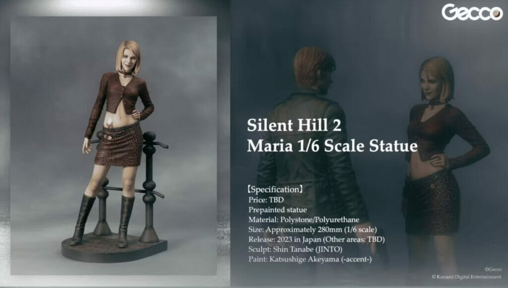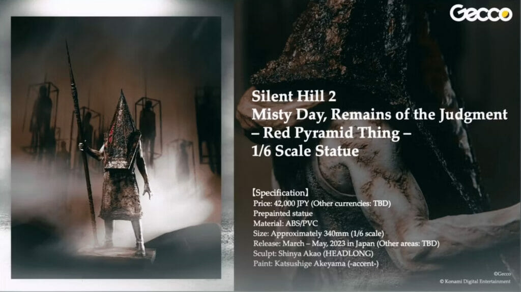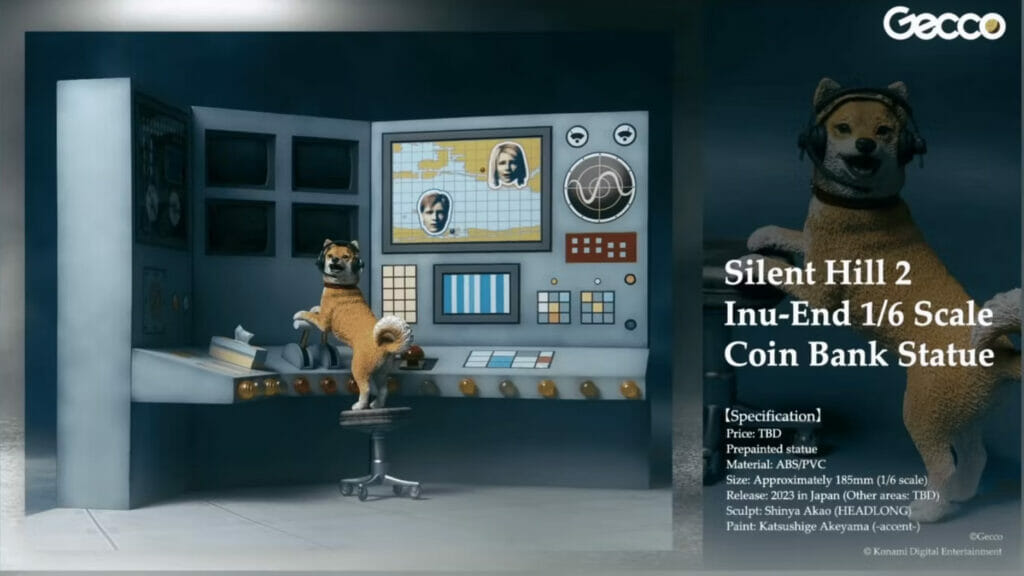 Um diorama representando James e Maria fugindo de Pyramid Head em uma cena icônica também está sendo produzido, ao lado de alguns pinos. Os fãs do Dog Ending podem ficar particularmente divertidos e satisfeitos ao saber que uma reprodução do cachorro e seu painel de controle estão sendo feitas como um banco de moedas.