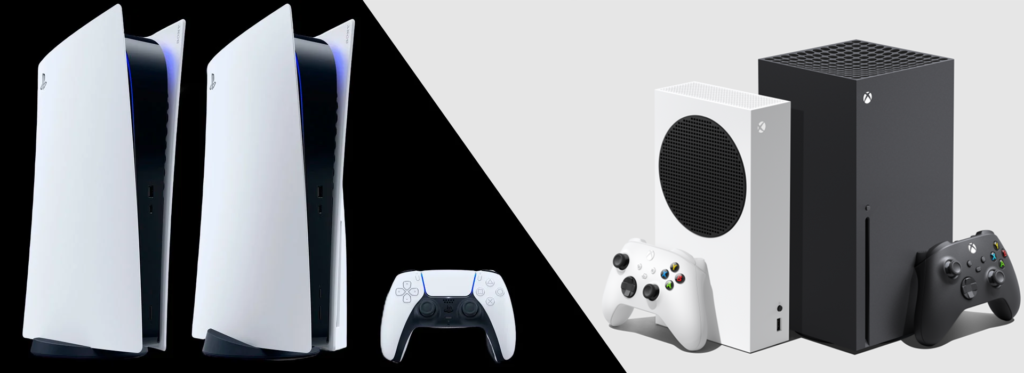 PS5 com suas versões Digital e Standard e Xbox Series S e X.