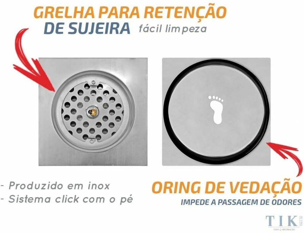 Esse produto tem um sistema de mola que ergue a tampa ao ser pressionado, impedindo que mal cheiro e insetos saiam do cano. Quase uma passagem secreta de jogo.