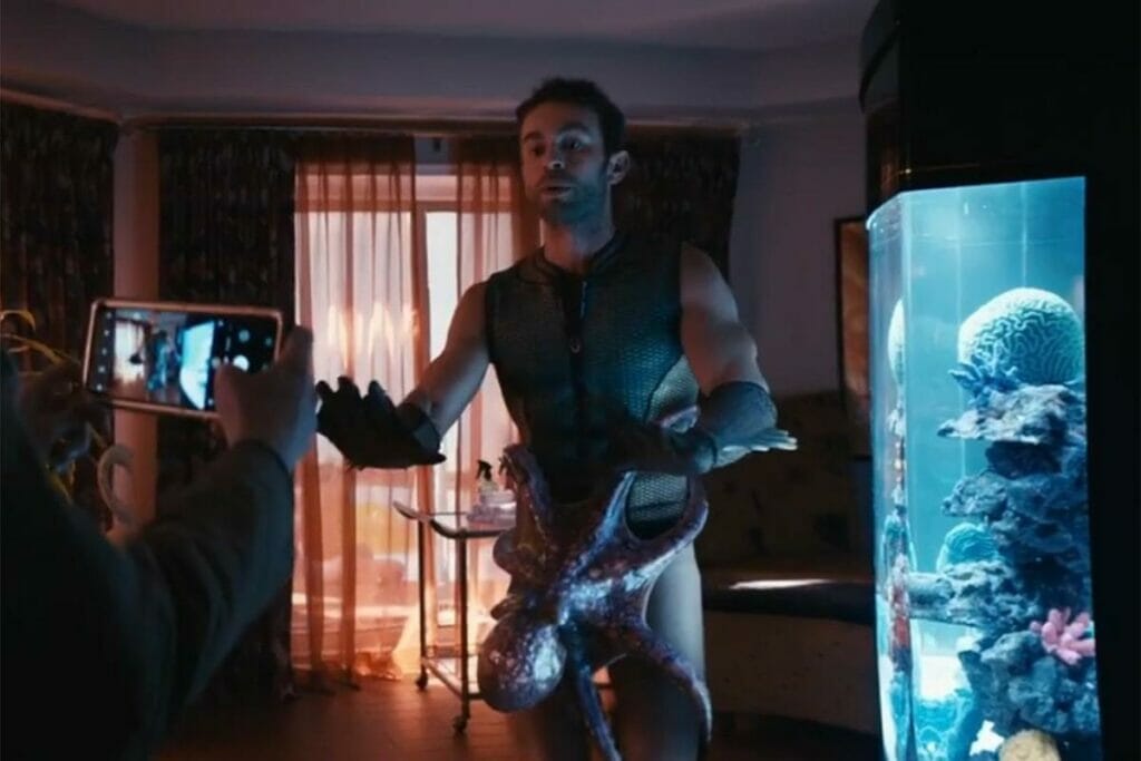 Na conta oficial do Twitter do The Boys, o programa republicou uma foto de um cosplayer reencenando a cena controversa, com o artista tendo um polvo em tamanho real enrolado em sua pélvis e torso. O artista recria o traje de assinatura do The Deep em sua metade superior com shorts de cor neutra ao redor de sua pélvis para implicar que ele não está usando calças.