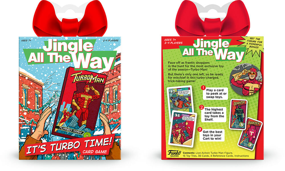 Um novo jogo de mesa baseado no filme de férias dos anos 1990, Jingle All the Way, no Brasil Um Herói de Brinquedo, foi anunciado. O novo jogo de mesa, Jingle All the Way: It’s Turbo Time imita o enredo central do filme onde o personagem principal interpretado por Arnold Schwarzenegger, tenta obter a última figura de ação do Turbo Man.