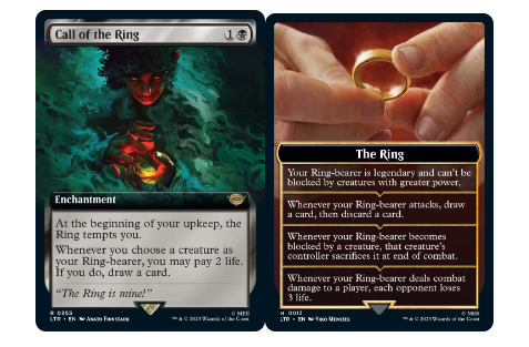 Assim como nas histórias de J.R.R. Tolkien, o Anel vai chamar os jogadores e vários cards do set terão habilidades que dizem “O Anel tenta você”. Na primeira vez que o Anel tentar o jogador durante o jogo, ele vai receber um emblema chamado “O Anel”, e um card impresso poderá ser mantido na zona de comando como lembrete de que aquele jogador possui esse diferencial –e o que ele faz.