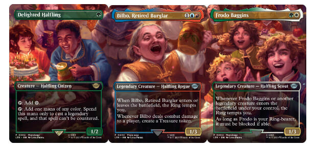 Outra parte do emocionante lançamento de MTG serão as cartas especiais que, quando colocadas juntas, formam uma cena ou ação dos livros. Na MagicCon: Minneapolis, os fãs puderam ver uma dessas cenas, que foi a festa de aniversário do Bilbo.