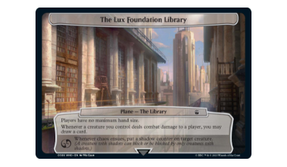 Estes decks de Commander são construídos em torno de Doctors clássicos: o nono, décimo, décimo-primeiro, décimo-segundo e décimo-terceiro, assim como dos vilões da série. Cada deck tem 50 cards novos e um set inédito de Planechaser com lugares famosos do Whoverso – para que o jogador consiga viajar pelo universo com seus Doctors e companheiros favoritos.