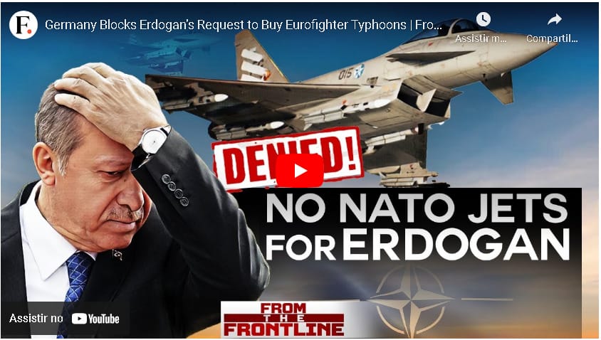 A Notícia se trata sobre a Alemanha negando o pedido do Erdogan de comprar os caças “Typhoon”, porém a imagem utiliza o padrão de pintura “Spare”, um esquadrão de prisioneiros de Osea, característicos por terem 3 linhas no leme vertical, que no jogo são chamados de “Linhas de Pecado”, cada membro do esquadrão possui uma ou duas linhas que indicam a gravidade do crime cometido.