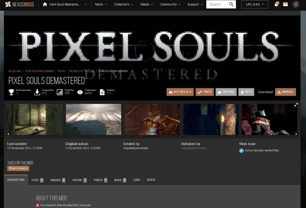 Dark Souls Remastered é a versão mais recente do primeiro jogo da série Dark Souls, e o segundo jogo a receber o título de Souls após Demon Souls da From Software. E no dia 15 de Novembro de 2023 o usuário thegreatgramcracker colocou no ar no site nexusmod um mod chamado de “Pixel Souls Demastered“