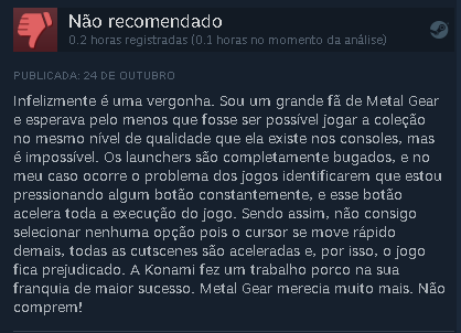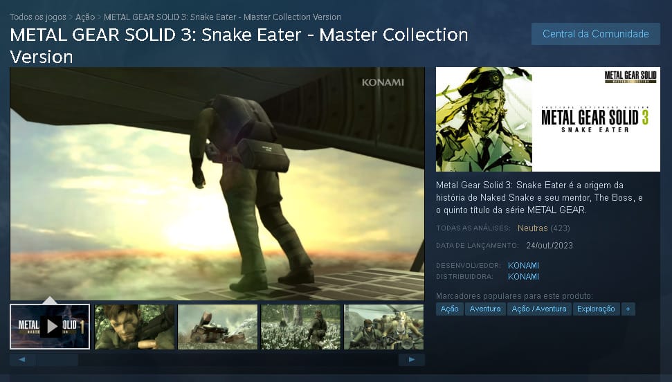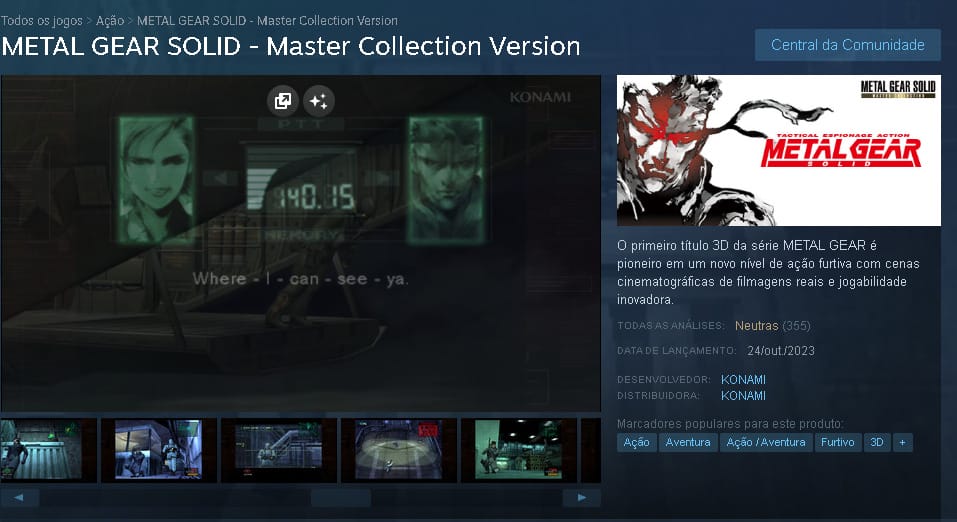 Metal Gear Solid: Master Collection Vol 1 é a nova coletânea da série, trazendo os jogos de MSX até Metal Gear Solid 3 Snake Eater para as plataformas atuais, sendo o segundo e terceiro jogo as versões lançadas para o PS3, intitulados de “HD Edition“. Mas com o lançamento na Steam (24/10/2023) até o dia que a matéria foi publicada (25/10/2023) a coletânea não foi bem recebida.