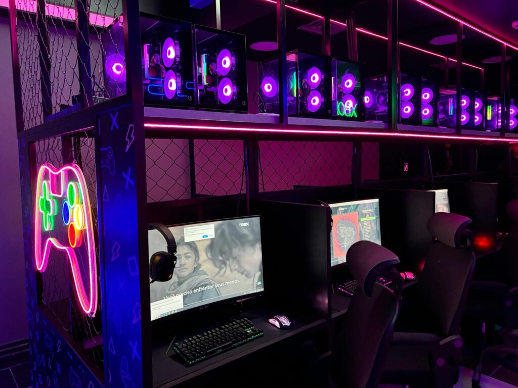A loja conta com uma ampla variedade de estações de jogos, incluindo 10 computadores de alto desempenho, 7 consoles de última geração (PS5 e Xbox Series X e Nintendo Switch), um Flipper de 40″ e 4 joysticks com 85.000 jogos, desde os mais clássicos como jogos atuais e 2 estações de realidade virtual (VR) com cockpit que prometem levar os jogadores a novos níveis de imersão. Além disso, a loja está equipada com um espaço temático retrô e uma área instagramavel, proporcionando aos visitantes um ambiente visualmente atraente e nostálgico.