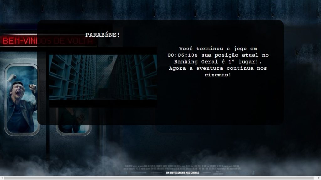 Lógico que devo confessar que isso aconteceu, porque já havia assistido a Escape Room 2: Tensão Máxima, portanto ficou um pouco mais fácil. Nem tão fácil assim, mas cada obstáculo que aparece na “sala do vagão” estão ali. É interessante como um jogo online ainda consegue manter todo o desafio de uma sala física. Além disso, deixa aquele gostinho de quero mais. O design do jogo é simples com as imagens do filme. Não é dificil entender os objetivos e como dito no início do desafio, pegue papel e caneta.