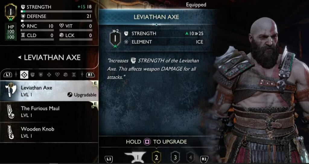 Não só isso, mas a armadura pode ser atualizada. Ao fazer isso, os jogadores obterão mais das estatísticas que desejam. Além da armadura, existem partes de armas como pommels para o Leviathan Axe e as Blades of Chaos que podem fornecer bônus para RNC e outras estatísticas.