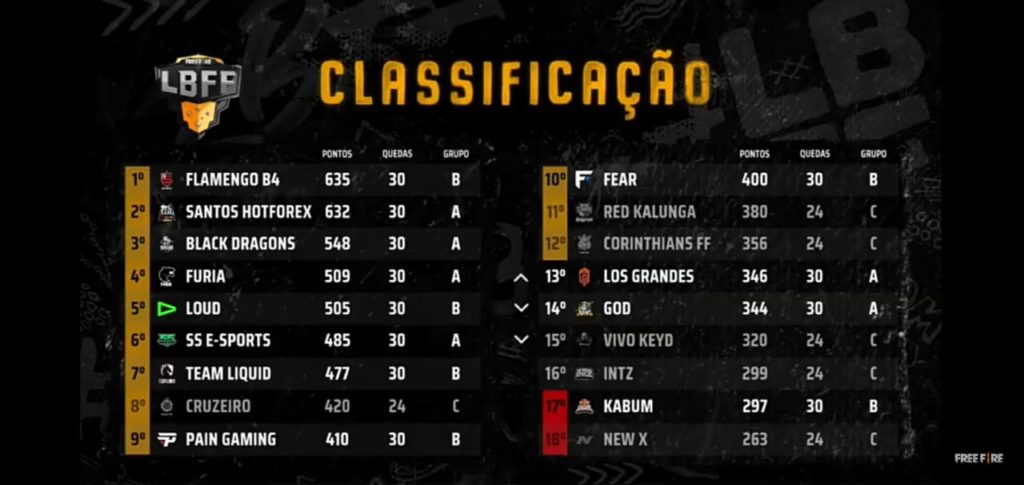 No fim desse sábado na tabela conjunta o Flamengo, mesmo sem ter conquistado nenhum mapa permanece na primeira colocação com 635 pontos, seguido do Santos com 632 pontos e Black Dragons com 548.