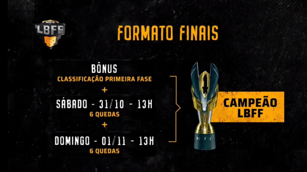 Ambas rodadas finais começam a partir das 13 horas (brasília) contando com 6 quedas, cada dia. o time que acumular mais pontos nos dois jogos se sagra campeão da LBFF.