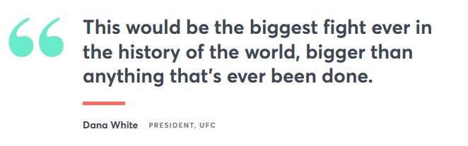 “Acho que triplica [Mayweather-McGregor]”, disse ele. “Não há limite para o que essa coisa pode fazer.”