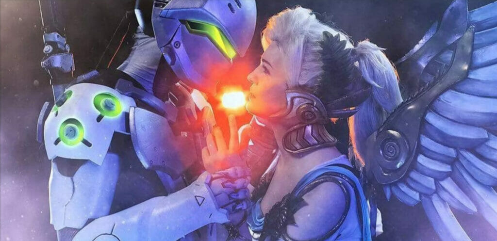 As cosplayers Lara e Non Stop Props recriaram essa cena romântica entre Genji e Mercy, com Mercy em sua skin Winged Victory. Os figurinos são muito próximos dos originais, com atenção impressionante até mesmo nos detalhes mais difíceis.