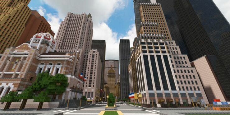 Midtown Manhattan, pode ser baixado no Planet Minecraft. Esta é uma replica em escala da cidade que começou em 2013 e foi atualizada pela última vez em agosto. Esta versão possui muitos edifício, incluindo estações de metrô, que com um saguão realista e elevador em funcionamento. Muitos edifícios famosos em todo o mapa também são totalmente mobiliados.