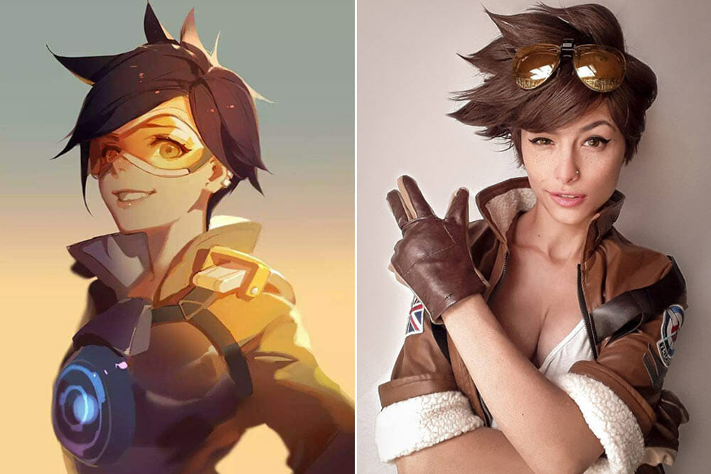 Aqui ela está arrasando em seu cosplay de Tracer. Tracer aka Lena Oxton é uma personagem que aparece no jogo Overwatch. Ela é enérgica e altamente móvel e suas habilidades incluem teletransporte e viagem no tempo. Você também pode encontrar Tracer na série de quadrinhos Overwatch.