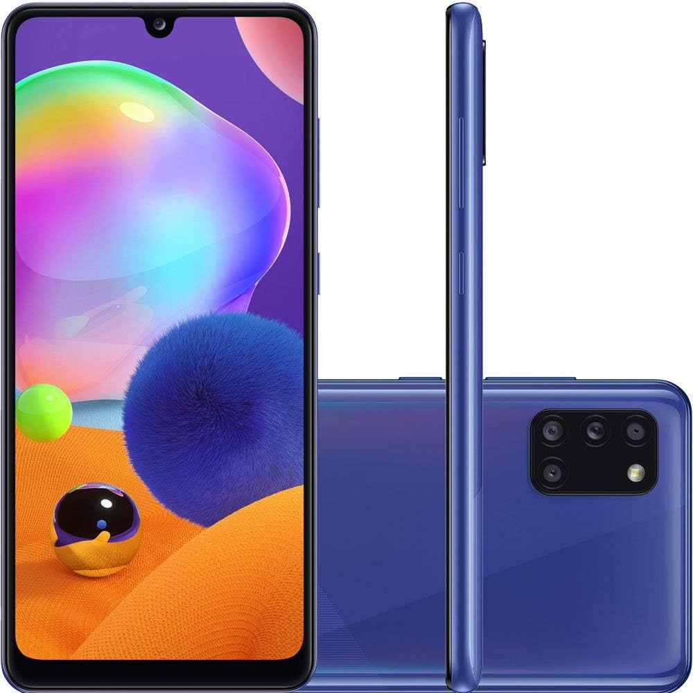 Samsung Galaxy A31 Azul, Tela de 6,4, 4G, 128GB e Camera de 48MP + 8MP + 5MP + 5MP – SM-A315GZBKZTO