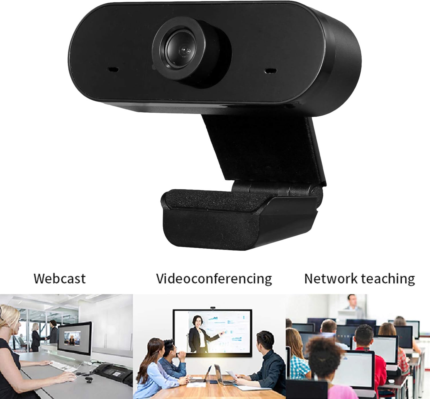 10. RALENO 1080p Webcam, microfones duplos embutidos, câmera de vídeo Full HD para computadores PC, laptop, desktop, USB Plug and Play, chamadas de vídeo de conferência, transmissão