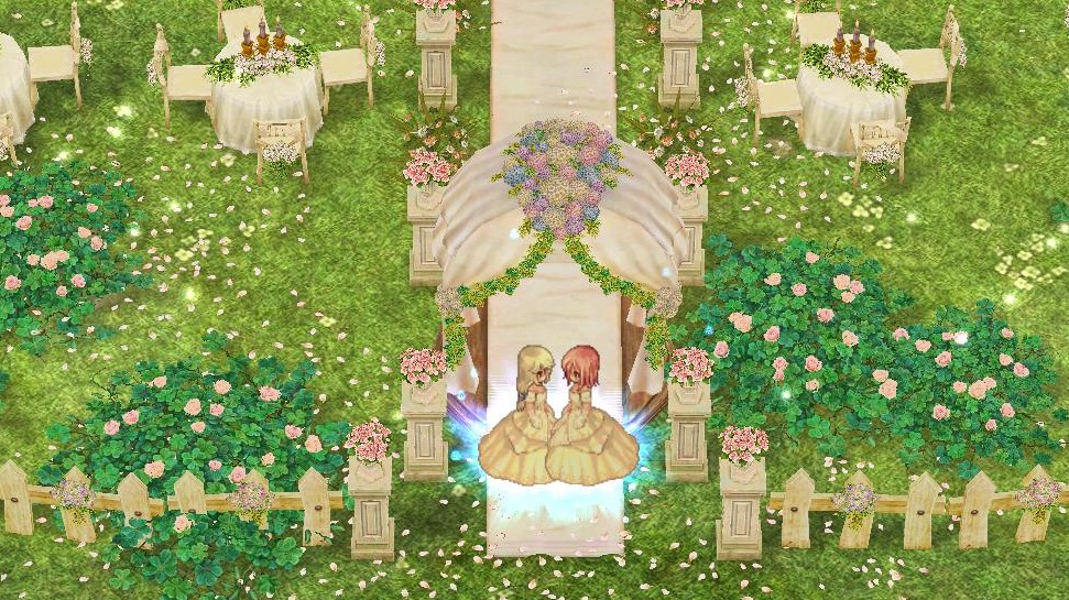 Para consumar o casamento, é necessário ir até Lasagna, cidade portuária da raça Doram, e pagar uma taxa de 1.500.000 zeny. É necessário possuir um par de Anéis de Diamante e os noivos devem utilizar o item Smoking, enquanto as noivas devem utilizar o Vestido de Casamento. Com todos os itens prontos, basta realizar a cerimônia com NPC Arcobaleno.