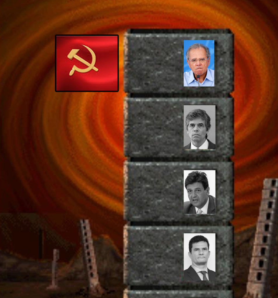 Aqui, mais uma vez os internautas ironizam o suposto extremismo que possuem todos os que discordam do presidente Jair Bolsonaro, sendo considerados comunistas. Diante disto, o símbolo do movimento comunista foi usado no clássico totem de disputas do jogo Mortal Kombat. Nessa Tower of Challengers, o símbolo avança para a sua mais recente ‘conquista” alcançada: o agora ex-Ministro Nelson Teich. O próximo, em tese, seria o Ministro da Economia, Paulo Guedes.