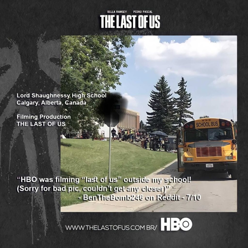 “A HBO estava filmando ‘The Last of Us’ do lado de fora da minha escola! Desculpem a imagem ruim, não consegui chegar mais perto.” diz a postagem foi compartilhada no Reddit. Ainda de acordo com o internauta, a escola em questão é a Lord Shaughnessy, uma escola pública de ensino médio, famosa por abrigar três programas: