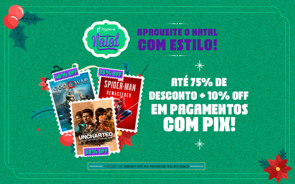 A promoção de fim de ano do Hype Games irá acontecer até o dia 4 de janeiro e vai trazer como destaque, títulos como, American Fugitive com 80% de desconto, Cat on a diet com 90% desconto, In Sound Mind com 85% de desconto e Megadimension Neptunia VII com 65% de desconto, God of War com 40% de desconto e UNCHARTED Legacy of Thieves Collection com 30% de desconto.