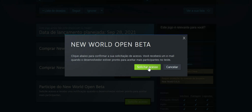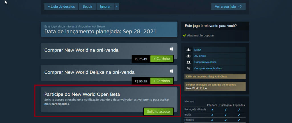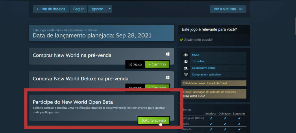 O beta aberto já está rolando na Steam, veja como ter esse primeiro contato com o jogo por lá em apenas 5 passos bem simples: