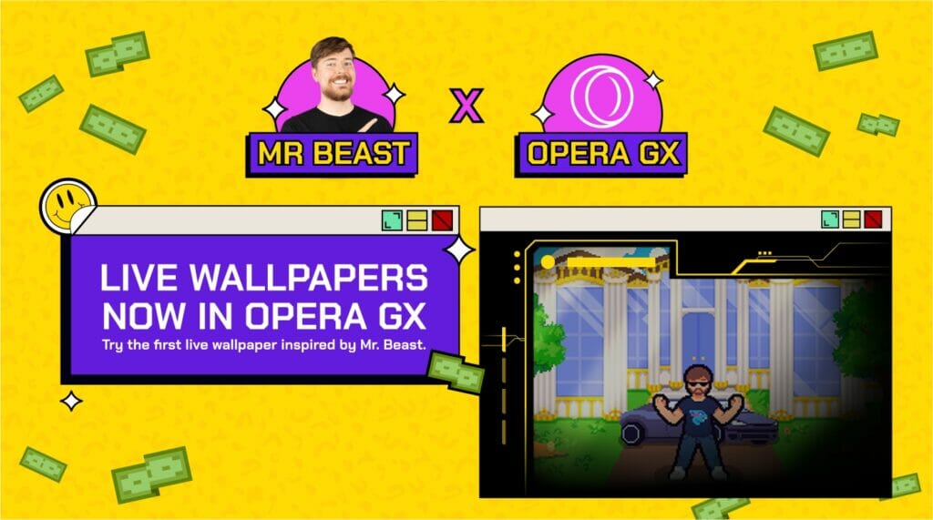 Para comemorar o lançamento do recurso e seu quarto aniversário, o Opera GX fez um Mod projetado especificamente para o YouTuber americano MrBeast. MrBeast revelará seu exclusivo Live Wallpaper ao vivo por meio de seu canal de jogos no YouTube no dia 6 de julho.